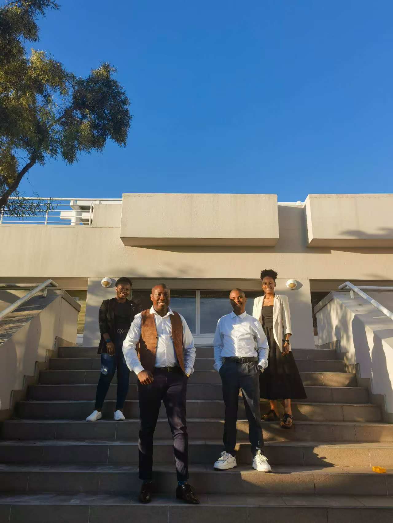 四个锚在南非跨境电子商务工业园区的前面拍照,Wen Xinjie留在了前排,右边是Ma Eng。长江国际贸易提供的照片