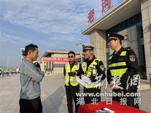 在登包高速公路老河口服务区,民警和路政人员通过发放宪法宣传册、宪法面部讲座、现场答疑等方式,向过往司乘人员介绍宪法、交通安全知识、公路违章预防、交通事故处理等相关知识。尤其是针对卡车司机群体,警方以法律案例为基础,结合实际案件,用生动的案例形式,深入研究该团伙对疲劳驾驶、超速行驶、抢乘客、违章停车等违法行为的安全性。