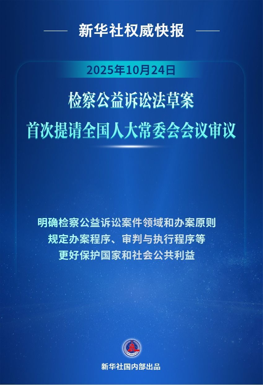 10月24日,检察公益诉讼法草案提请第十四届全国人民代表大会常务委员会第十八次会议审议。草案共6章53条,规定了检察官办理公益诉讼案件的范围、原则、权限和程序。检察公益诉讼制度建立以来,在实践中取得了积极成效。检察公益诉讼法的制定,进一步总结了近十年来相对成熟的经验做法和各项制度变迁,有利于解决实际问题,进一步推动检察公益诉讼工作诚信创新、提质增效,发展成为一个整体,更好地保护国家和社会公众的利益。记者:刘硕海报公关制作:刘硕 新华社内部制作