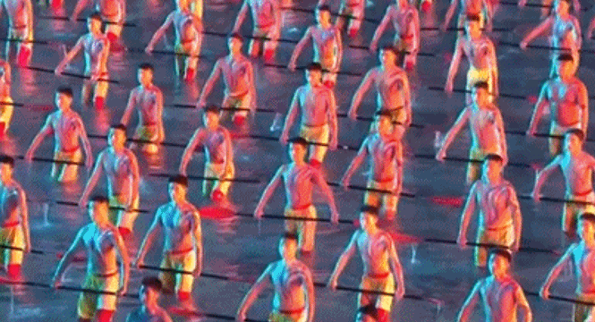 当舞台突然消失时,少年们冲入水中,堆起人塔,骑马过河,展现了“造人塔”的绝活。