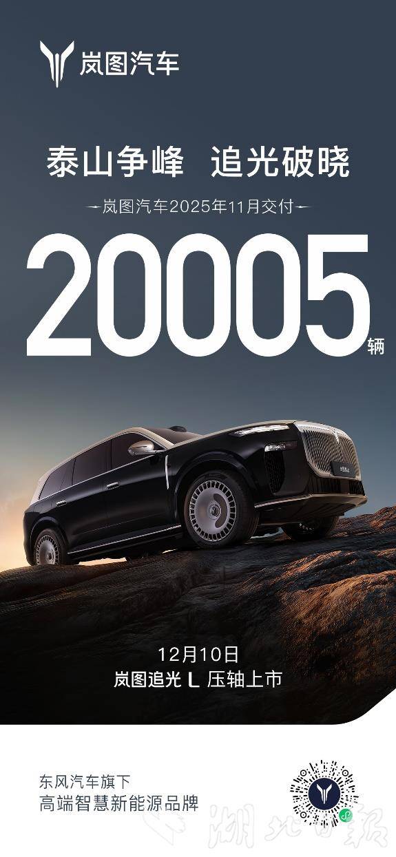 湖北日报讯(记者左辰、通讯员张莹莹)12月1日,岚图汽车发布11月份销量数据,单月交付20005辆。